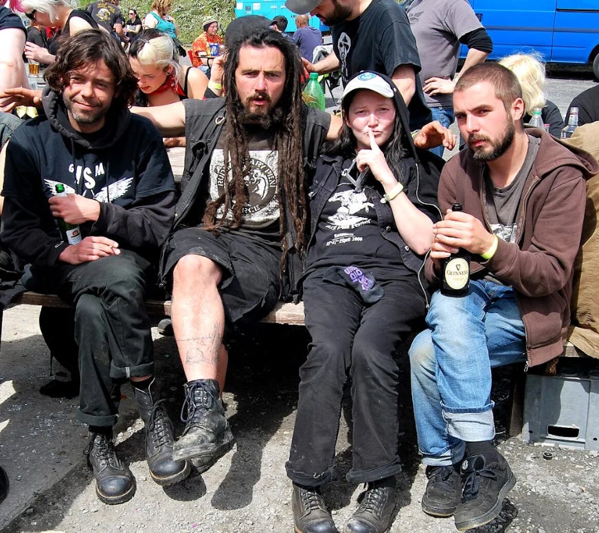 Many genres have key components of visual and fashion representation as a form of meaning that informs the music’s ethos, but not every one has such wide-ranging lifestyle impacts as crusty crust punk. The name crust literally derives from the crust that might develop in your hair or the dirt that accumulates on your skin as its pioneering punks moved from place to place without a home. In an excellent dissertation by David Roby on crust punk, an oxymoronic case of eloquent redundancy aptly illustrates the scene: “only the crusty crust punks live a life of crustiness.” This act of so-called ‘slumming it’ and letting your hair grow wild and dirty dedicates itself to an in-your-face (and in-your-nose) punk anarchism.